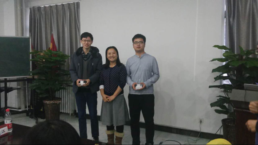 在此次模拟英语学术会议中,经过五位评委老师的综合评定,最后,黄舫湲同学获得最佳学术报告奖,李丹同学获最佳风采奖,刘旻与李壮同学获得优秀学术英语奖,经过现场观众投票,最终获得优秀学术墙报奖的有姜鹏飞,谭光钰与张子玄同学。与会的同学都获得了优盘和台灯等小礼物。