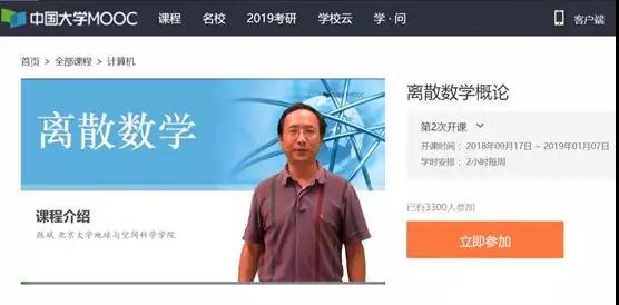 图为2018年9月17日即将上线的新学期“离散数学概论”慕课界面