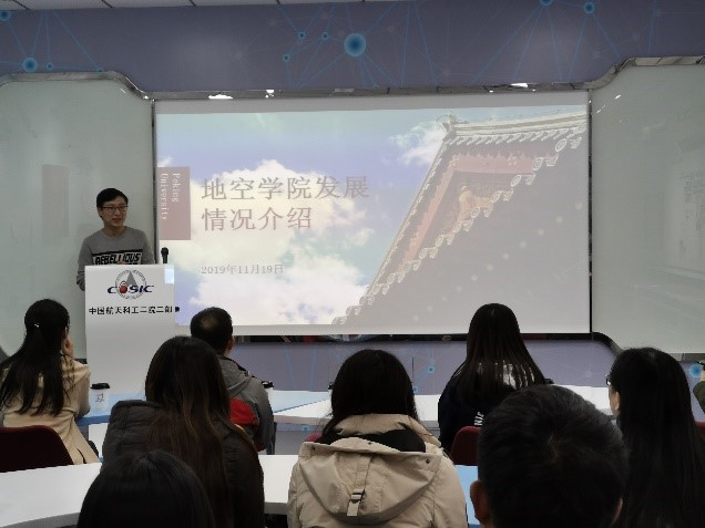 同学们首先与二院的党员同志们进行了简单的交流讨论。北大学生代表裴召文同学向二院同志介绍地空学院的发展情况,二院同志也向同学们介绍单位基本情况并共同观看宣传片。