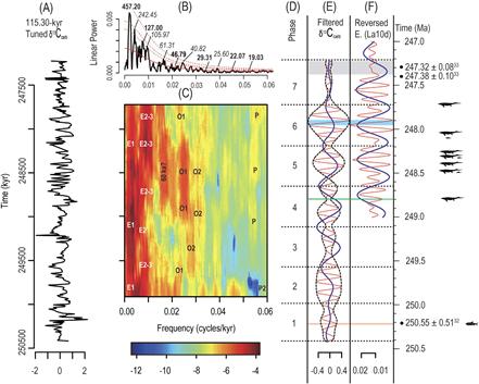 此外,研究团队通过对化石层上下的近200米厚度的碳酸盐岩地层进行高精度取样,进行了系统的相分析,测得大量无机碳同位素数据。通过系列实验论证,认为该同位素数据可以反映原始古海水信息,并揭示了碳循环背后的天文周期。据此,在缺乏放射性同位素定年和高精度生物带等研究材料的情况下,研究首次得到了目前已知最古老的海生爬行动物出现的时间点。该时间点处于二叠纪末期生物大绝灭之后约三百多万年,小于前人认为的五百到八百万年。同时认为,海生爬行动物的起源可能和大洋垂向流动增强、大洋缺氧事件结束、以及全球高温趋势的变化相关。