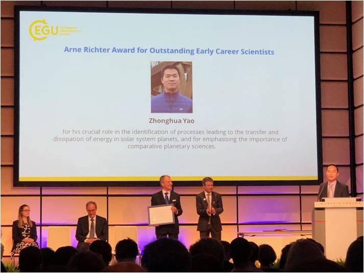 我院尧中华博士因空间与行星科学研究成就荣获欧洲地球科学联盟Arne Richter奖